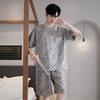 Men's Pajamas set Short-Sleeve tops and Shorts Sleepwear Loungewear Students Two-Piece Striped Youth Nightwear y2k Homewear male