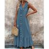 Bohemian Maxikleider Für Damen Im Frühling Und Sommer, Einfarbiges, Ärmelloses, Geräuchertes Langes Kleid Mit V-Ausschnitt Und Plissee