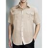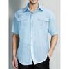 Herrenhemden aus Baumwolle und Leinen, kurzärmelig, Nadelstreifenmuster, atmungsaktiv, modisch, einfarbig, Umlegekragen, lässiges Button-Down-Hemd
