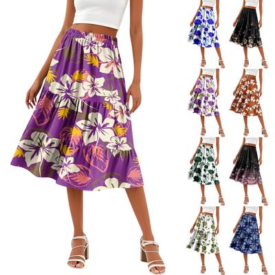 Damen Casual High Waist A-Linienrock Polka Dot Streifen Bedruckter Rock Mit Taschen