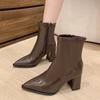 Diese eleganten hochhackigen Stiefeletten sind eine perfekte Ergänzung für Ihre Herbst- und Wintergarderobe.. Im französischen Stil gestaltet, verfügen sie über einen raffinierten, dicken Absatz, der für den Außenbereich geeignet ist.. Diese Stiefel sind aus hochwertiger Mikrofaser sowohl für das Obermaterial als auch für das Futter gefertigt und gewährleisten Langlebigkeit und Komfort.. Die Innensohle besteht aus Polyurethan und bietet zusätzliche Dämpfung und Unterstützung für den ganzen Tag.. Ideal für modebewusste Frauen, die ein stilvolles Statement setzen möchten, verbinden diese Stiefel nahtlos Komfort mit Eleganz.