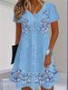 Damen Koreanischer Stil Übergröße Jeanskleid mit Kurzen Ärmeln und Besticktem Altersreduzierendem Midilangen Jeansrock