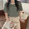 Rundhals Gestreifter Kurzarm Strickpullover Damen Sommer T-Shirt Design Sinn Nische Lockere Oberteile Lässig Essentiell Komfort Stil Slim Fit Pullover T-Shirts
