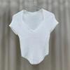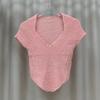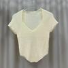 V-Ausschnitt Kurzarm Strickshirt Damen Sommer Modelle Positive Schulter Design Sinn Nische Slim Kurz Unregelmäßige Passende Oberteile Lässige Pullover T-Shirts