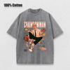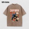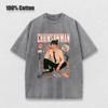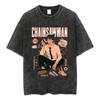 Anime Chainsaw Man Acid T-Shirt Retro Vintage Gewaschenes Bedrucktes Grafik T-Shirt Herren Baumwolle Lässig Kurzarm T-Shirt Oberteile