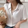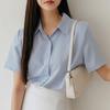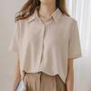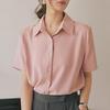 Diese elegante Sommerbluse ist aus leichtem Chiffon gefertigt und bietet eine luftige und bequeme Passform. Mit seinem eleganten, einfarbigen Design verleiht es jeder Garderobe einen Hauch von Raffinesse. Die Bluse hat eine schmeichelhafte, lockere Passform, ergänzt durch kurze Ärmel und einen klassischen Umlegekragen. Es eignet sich perfekt für legere und formelle Anlässe und wertet Ihren Sommerstil mit seinem vielseitigen Charme mühelos auf.