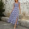 Damen Kleid Sommer Mode Neckholder Bedruckt Ärmellos Geteiltes Langes Kleid