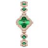 Smaragdgrüne Quarzuhr mit vierblättrigem Kleeblatt-Armband für Damen