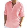 Herren Casual Baumwolle und Leinen Einfarbig Langarmhemd Lose Stehkragenhemd Männer