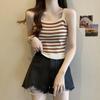 2025 Damen-Strick-Camisole mit französischen Streifen: Schmales ärmelloses Sommertop