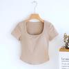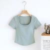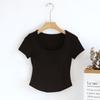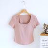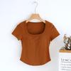 Damen Kurzarm-T-Shirt mit Brustpolster, unregelmäßigem Saum, quadratischem Ausschnitt und BH-Unterbrustband – perfekt für den Sommer.