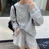 Trendy Damenanzug im Hong Kong-Stil: Zweiteiliges Set aus locker sitzendem Langarmoberteil und schmalen Shorts