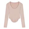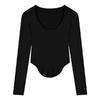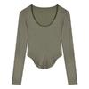 Grünes Damen Langarm Unregelmäßiges Crop Top - Herbstausgabe