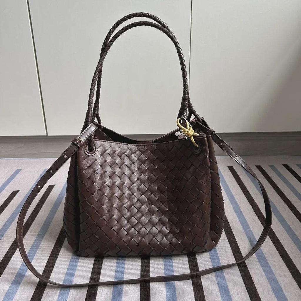 2024 Herbst/Winter Damen Handtasche aus echtem Leder, gewebt: Große Fallschirm-Umhänge- & Crossbody-Tasche