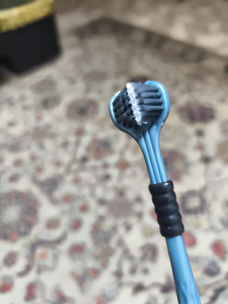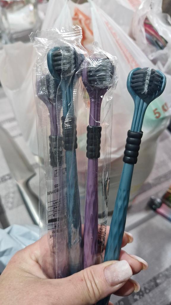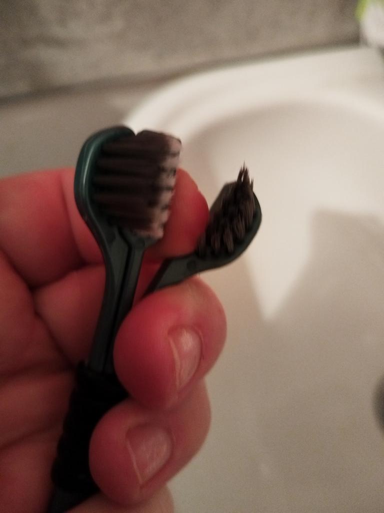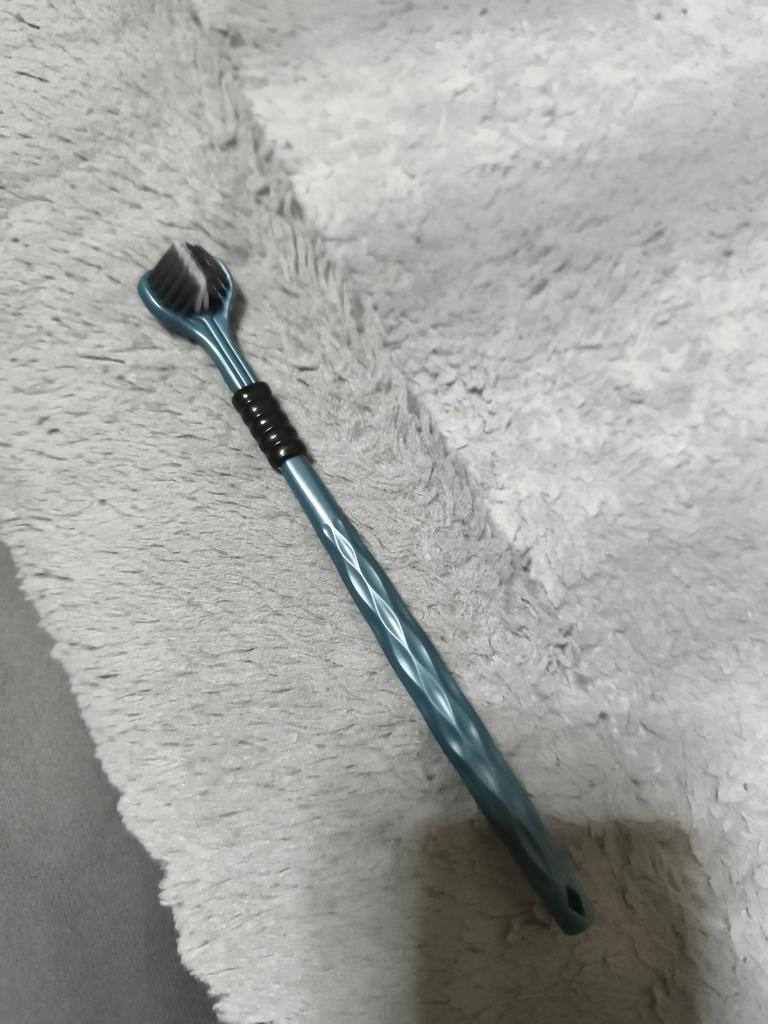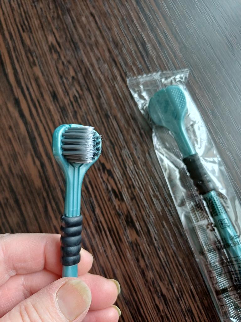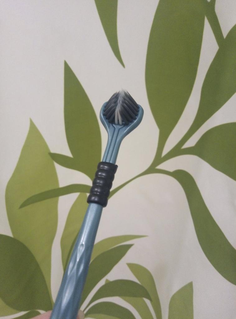 Die Zahnbürste ist eine, aber die Bürsten sind drei, erinnert irgendwie an den Drachen Gorynych...man muss sich daran gewöhnen, damit die Zähne zu putzen.