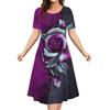 Estampa floral feminina elegante vestido midi, roupas femininas de manga curta extragrande, moda verão, 2024