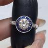 Huitan Weiß/Dunkelblau Zirkonia Damenringe Vintage Accessoires für Hochzeit Jubiläum Party Luxuriöser Eleganter Damenschmuck