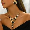 Boho-Chic Damen Schmuckset: Spiralförmiges Schneckendesign mit schwarzem Strass - Beinhaltet Y-Kette & Ohrstecker, perfekt für Alltag & Party