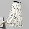 Geblümter Halbrock Sommer Hohe Taille Schlankmachend Weiter Weiß Bedruckter Rock A-Linie Chiffon Midilanger Rock