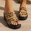 2025 Leopardenmuster Sommer Neu Muffin-Boden Leopardenmuster Dicke Sohle Damen Hausschuhe Außen Tragen Keilabsatz Europäisch und Amerikanisch Große Größe Manufa