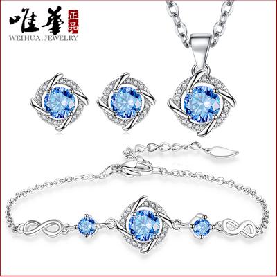 Ozean Ewiges Herz Halskette Damen Koreanische Edition Leichter Luxus Nische Liebesform Anhänger Halskette Ohrringe Armband Dreiteiliges Set