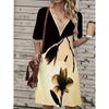 Damen Frühling/Sommer Printkleid Spitze V-Ausschnitt Loose Swing Kurzarm Mittellanges Kleid