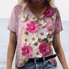 2025 Damen T-Shirt Sommer 3D Blumen T-Shirt Übergröße Damenbekleidung Übergroßes Designer Kurzarmshirt Damen V-Ausschnitt Bluse