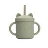 Baby Silikonbecher Baby Lernbecher mit Trinkhalm Lebensmittelqualität Kinder Rutschfest mit Griff Fütterungs-Wasserbecher BPA-frei