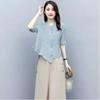 Damen Sommer Freizeitanzug Mittleren Alters Mama Temperament Unregelmäßiges Kurzarm-Oberteil + Weitbeinige Hose Ethnischer Stil Zweiteiliger Anzug