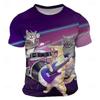 Herren-T-Shirt mit 3D-Cartoon-Katzen-Print – lässiger Rundhalsausschnitt, kurze Ärmel, modisches Oberteil für Alltag und Urlaub