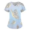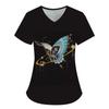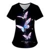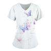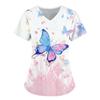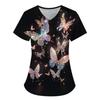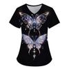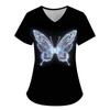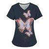 Damen T-Shirt V-Ausschnitt Krankenschwester Uniform Pendeln Schwarze Serie Schmetterlingsdruck Damen T-Shirt