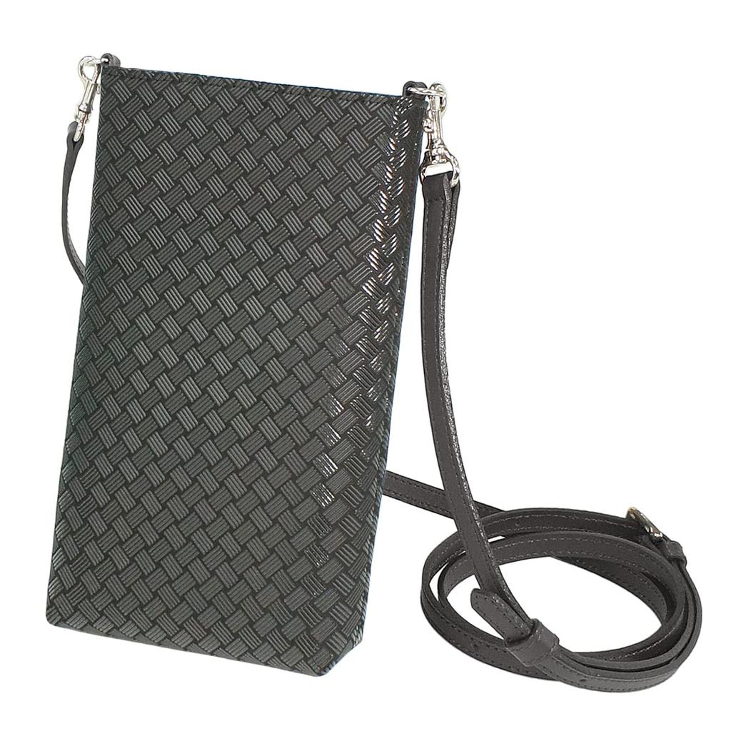 Indenya Inden Sacoche Smartphone Pochette Smartphone Case Crossbody Deerskin Black x Black Lacquer Ajiro Net Pattern 5029-01-158