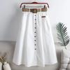 Damenrock Frühjahr/Sommer 2025, gewaschene Baumwolle, elastischer Bund, hohe Taille, Taschengürtel, einfarbig, lange A-Linien-Röcke, geschlitzter Saum, vielseitig kombinierbar