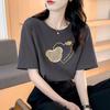 VEZFAA Damenmode Casual Sommer Frühling Liebesbrief Druck Kurzarm O-Ausschnitt Blusen & Hemden
