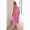 Stehkragen Macaronfarbe Taillenloses Langes Kleid