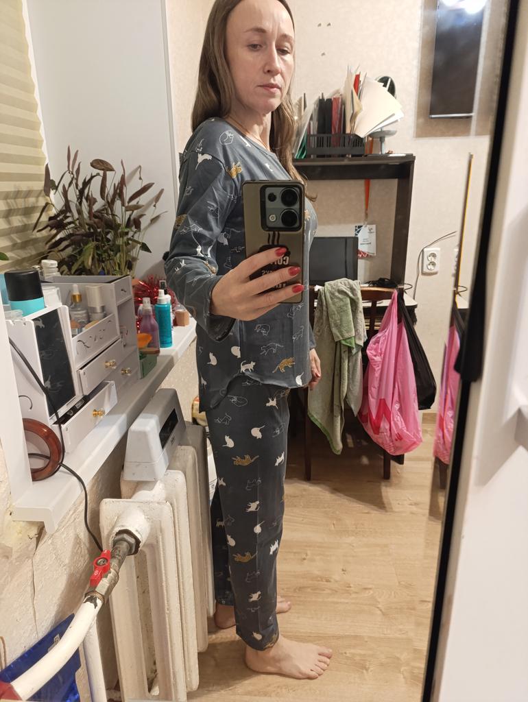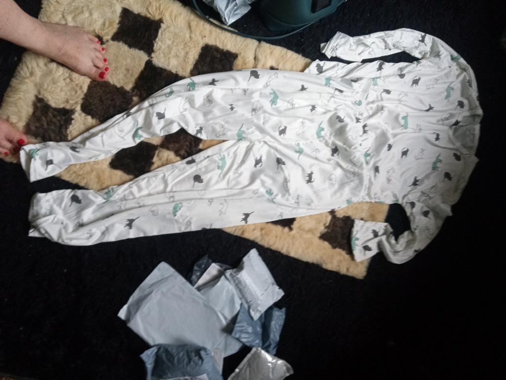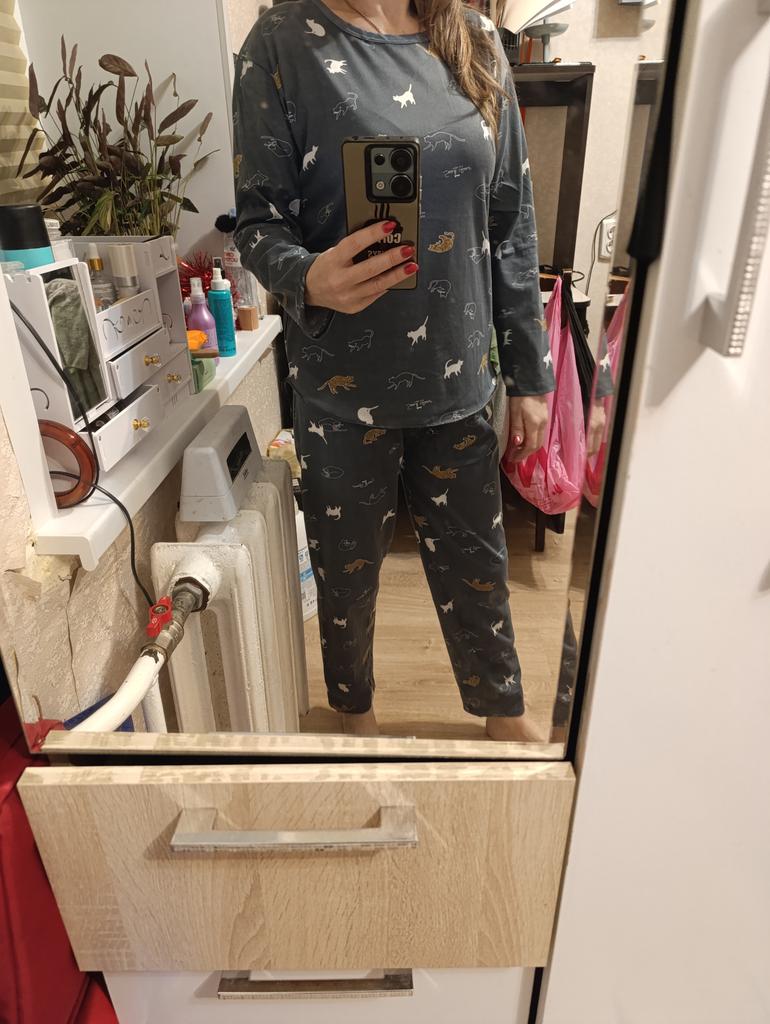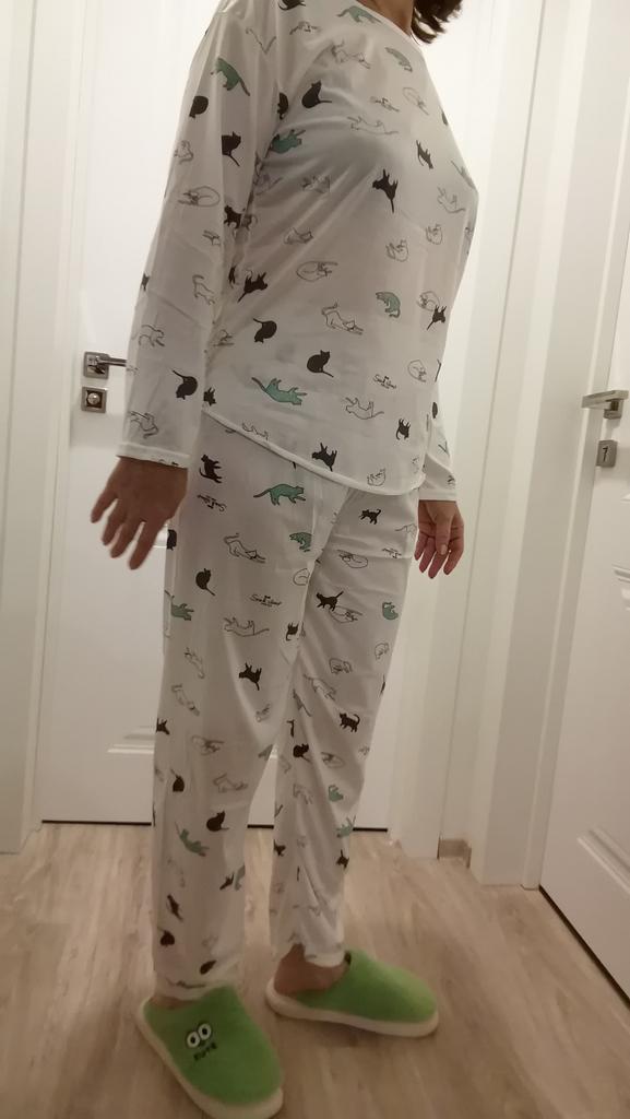 Der Pyjama hat mir gefallen, er ist dünn, leicht, aber genau so einen brauchte ich. Und mit Kätzchen! 🐱 Größe 2XL hat gepasst, aber man hätte auch L nehmen können.