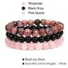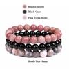 3 Stück/Set Naturstein Armband Rosenquarz Obsidian Amethyst Tigerauge Perlen Elastisches Armband für Damen Herren Gesundheitsschutz