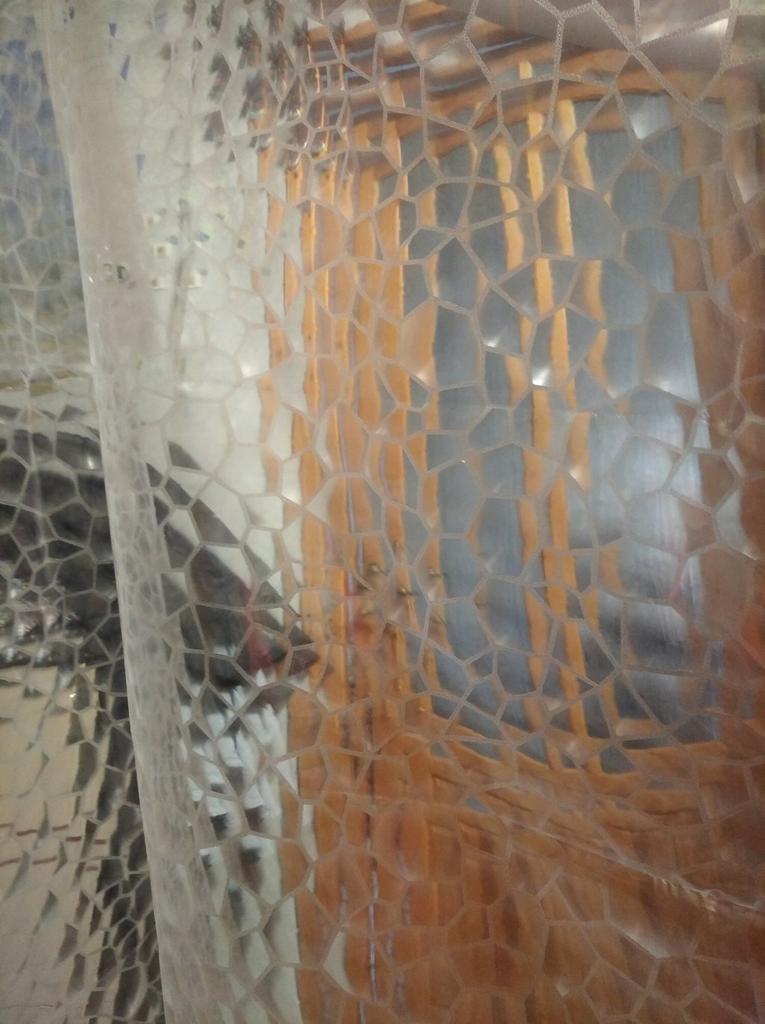 dünner transparenter Vorhang. Belastet das Badezimmer nicht
