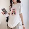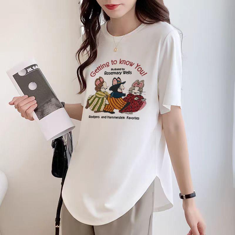 T-Shirt Damen Slim Top Unregelmäßig Baumwolle Kurzarm Sommer Gebogener Saum Große Größe Mittellang Stil Po-bedeckend