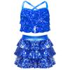 Jazz-Tanz-Outfit für Mädchen, glitzerndes, gestuftes Rüschen-Crop-Top, metallische Culottes für Bühnenauftritte