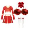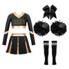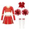 Cheerleading-Wettkampf-Set für Mädchen, langärmelig, bauchfreies Top, Faltenrock, Schleife, Stirnband, Kniestrümpfe, Pompom-Zubehör