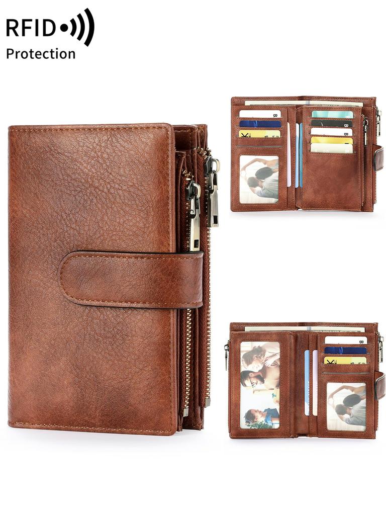 Mode Damen Geldbörse Vintage Faltriemen Doppelte Reißverschlusstasche Kurzer Kartenhalter Hohe Qualität Luxuriös Tragbare Clutch Kartenhalter