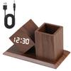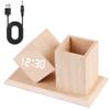 : Genießen Sie eine saubere, zeitgenössische Atmosphäre, während die LED-Anzeige dezent durch die Holzfassade dieses LED-Nachttischweckers scheint und ein warmes Leuchten und klare Sichtbarkeit bietet, ohne die Ästhetik zu beeinträchtigen.