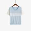 Damen Rundhals Kontrastfarben Gestreiftes Oberteil Damen Strickpullover Sommer Locker Kurzarm T-Shirt