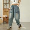 DIMANAF Übergröße 2025 Damen Jeans Sommerhosen Hohe Taille Locker Taschen Elastisch Basic Harems Hose Maxi