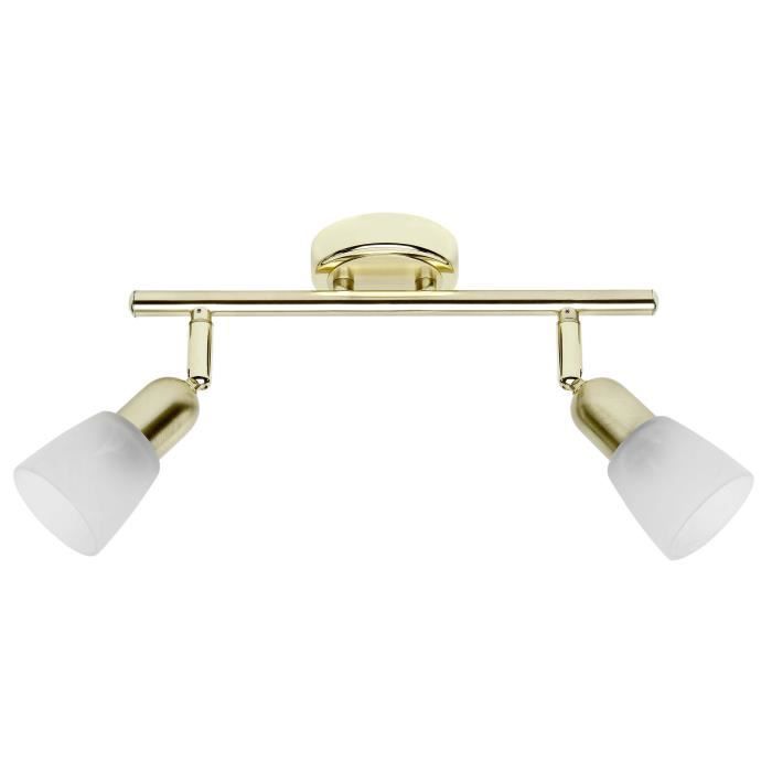 Plafonnier à 2 lumières sofia hauteur 10 cm e14 40w laiton et blanc