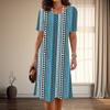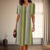 Damenmode Anmutige Retro Karomuster Druck Sommer Frühling Kurzarm O-Ausschnitt Freizeitkleider