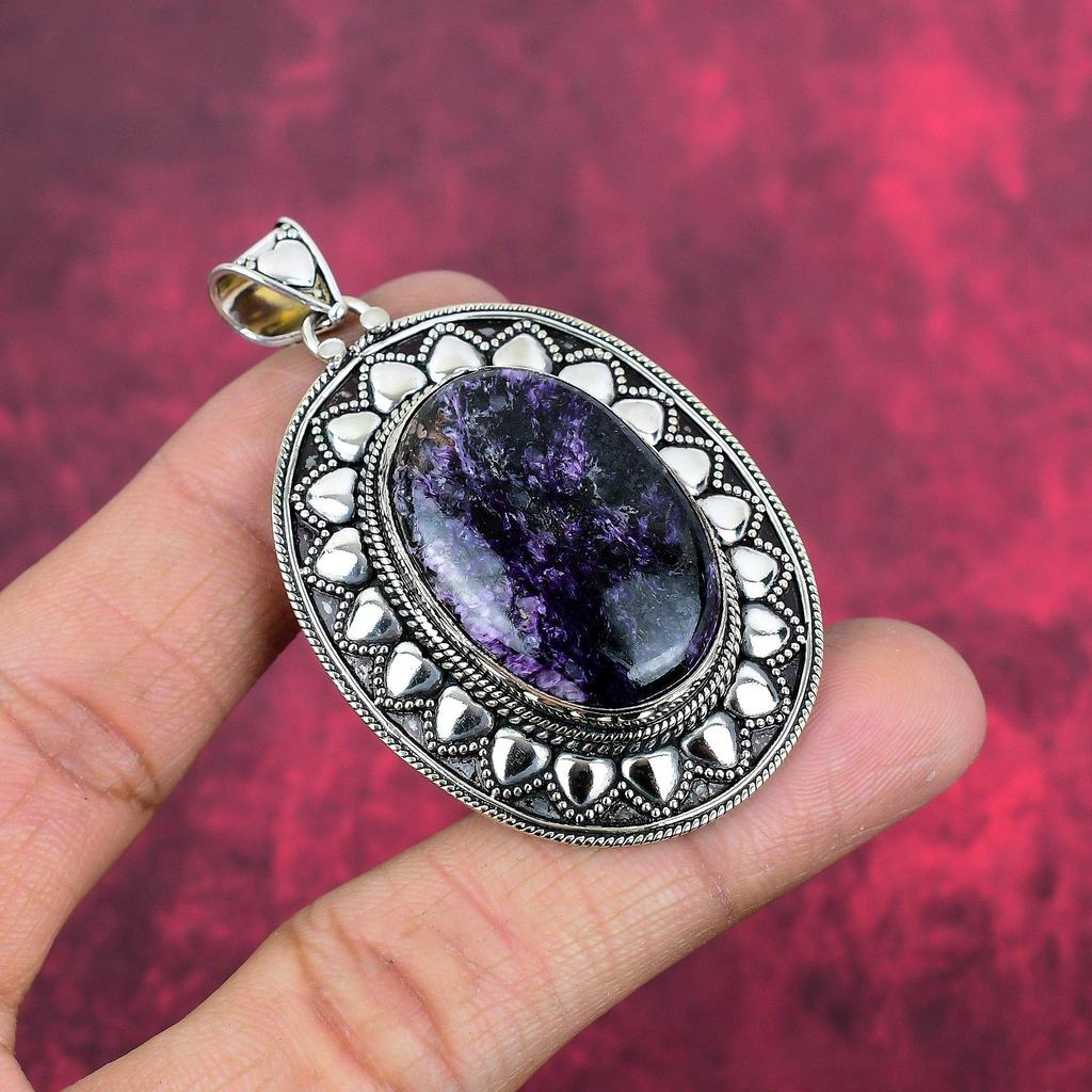 Charoit Handgefertigter Edelstein Anhänger, 925 Sterling Silber Anhänger Antiker Schmuck, Für Verlobungsgeschenk