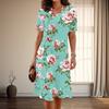 Damenmode Anmutiges Blumendesign Print Sommer Frühling Kurzarm O-Ausschnitt Freizeitkleider