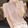 2025 Sommer Strickbluse Freizeithemden für Damen O-Ausschnitt Strickwaren T-Shirt Sonnenschutz Diamant Kurzarm Pullover T-Shirt 28281